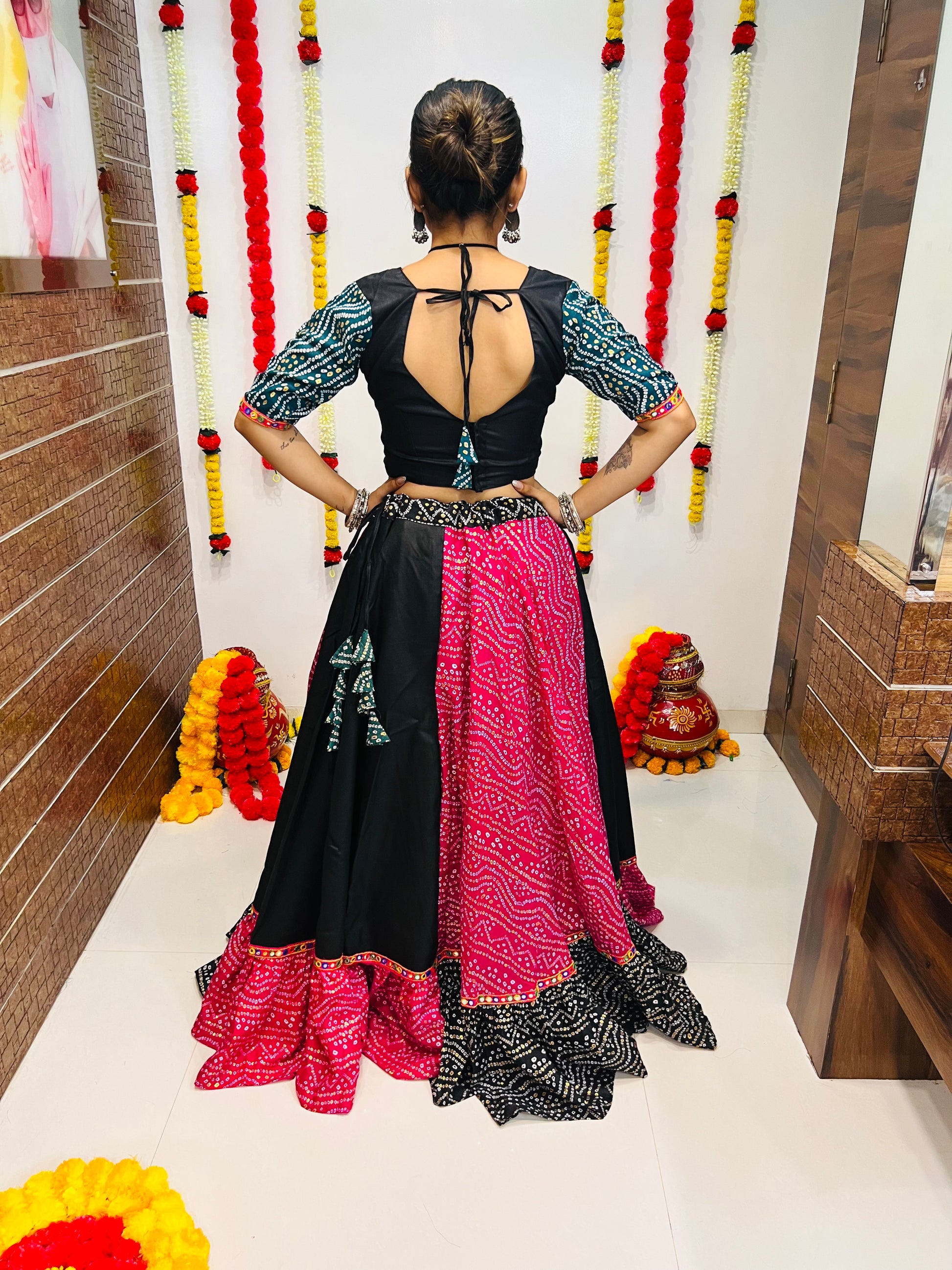 Bandhani Navratri Chaniya Choli – Black & Pink Cotton Silk Lehenga with Bandhej Dupatta