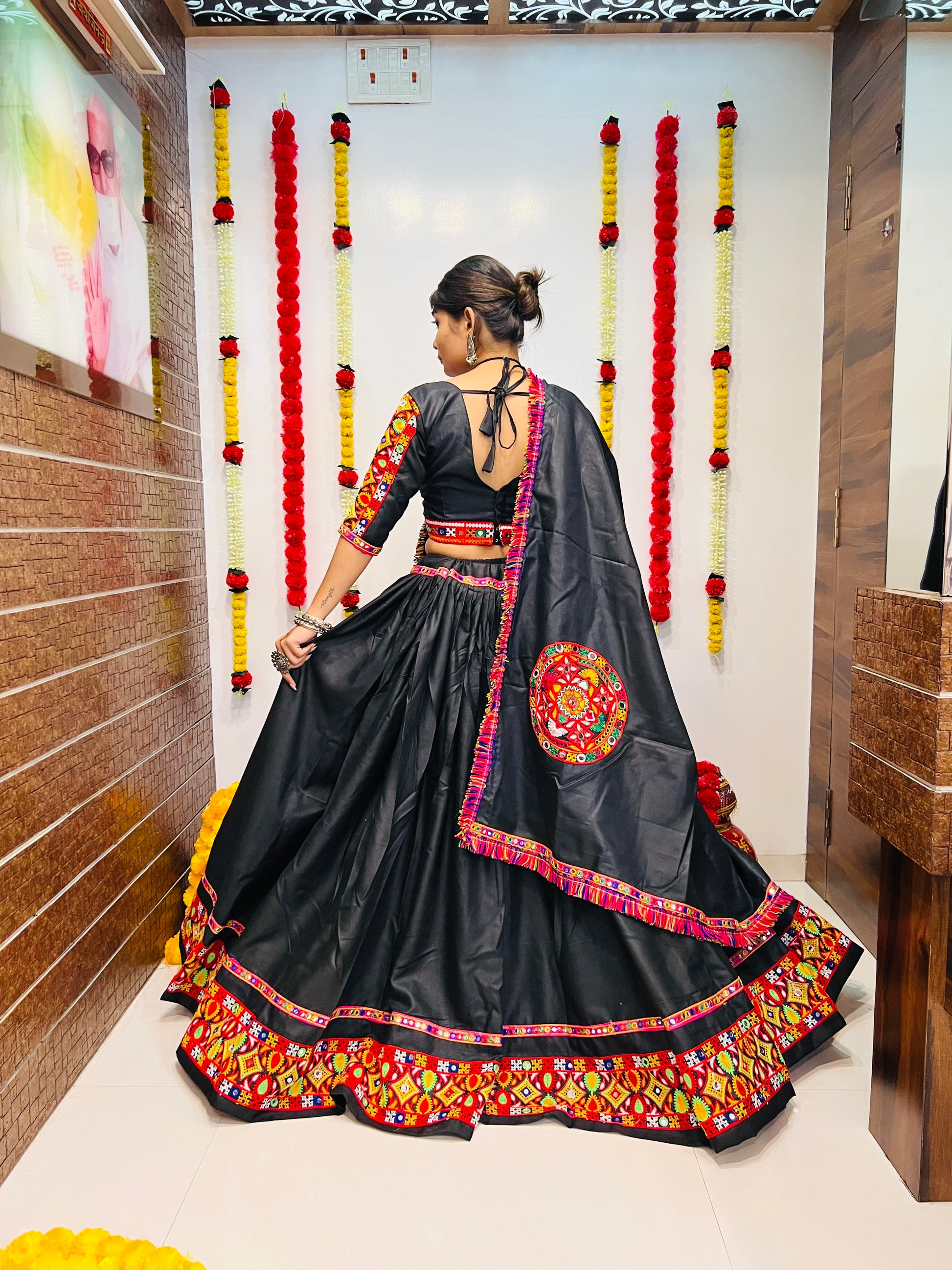 Black Gamthi Work Navratri Chaniya Choli with Multicolor Embroidered Border