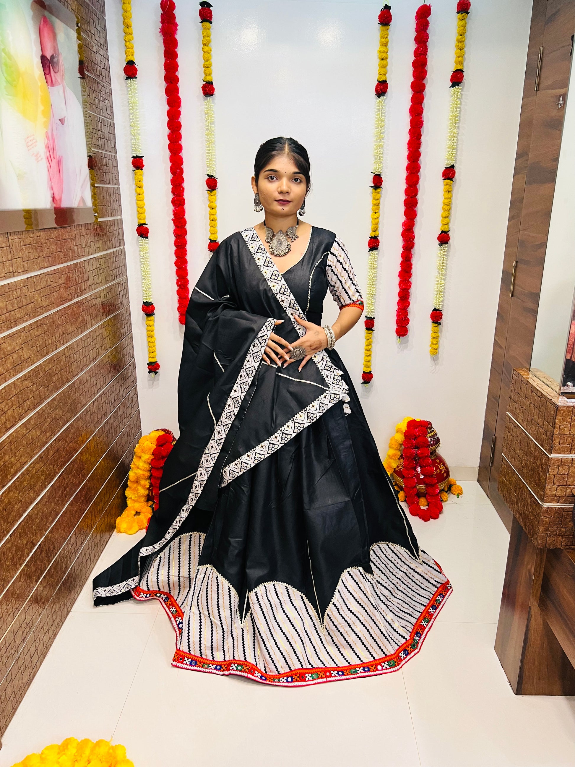 Black & White Gamthi Work Chaniya Choli – Navratri Special Rajwadi