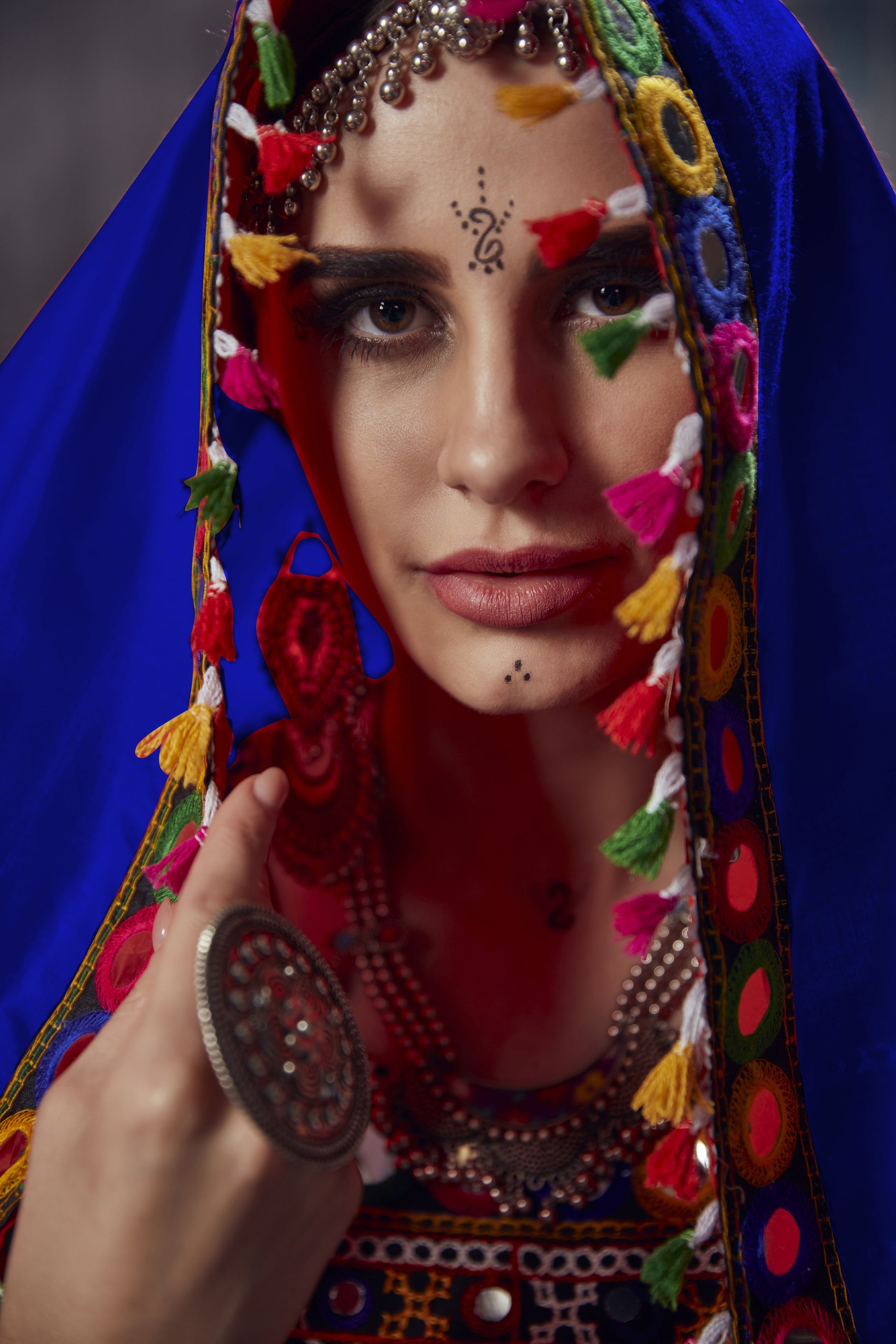 Dupatta: Royal Blue with Multicolor Tassels