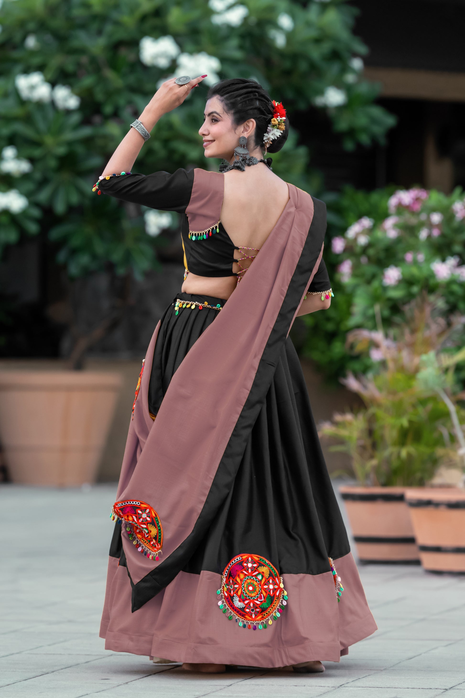 Navratri Special Black-Rosy Brown Gamthi Work Cotton Chaniya Choli