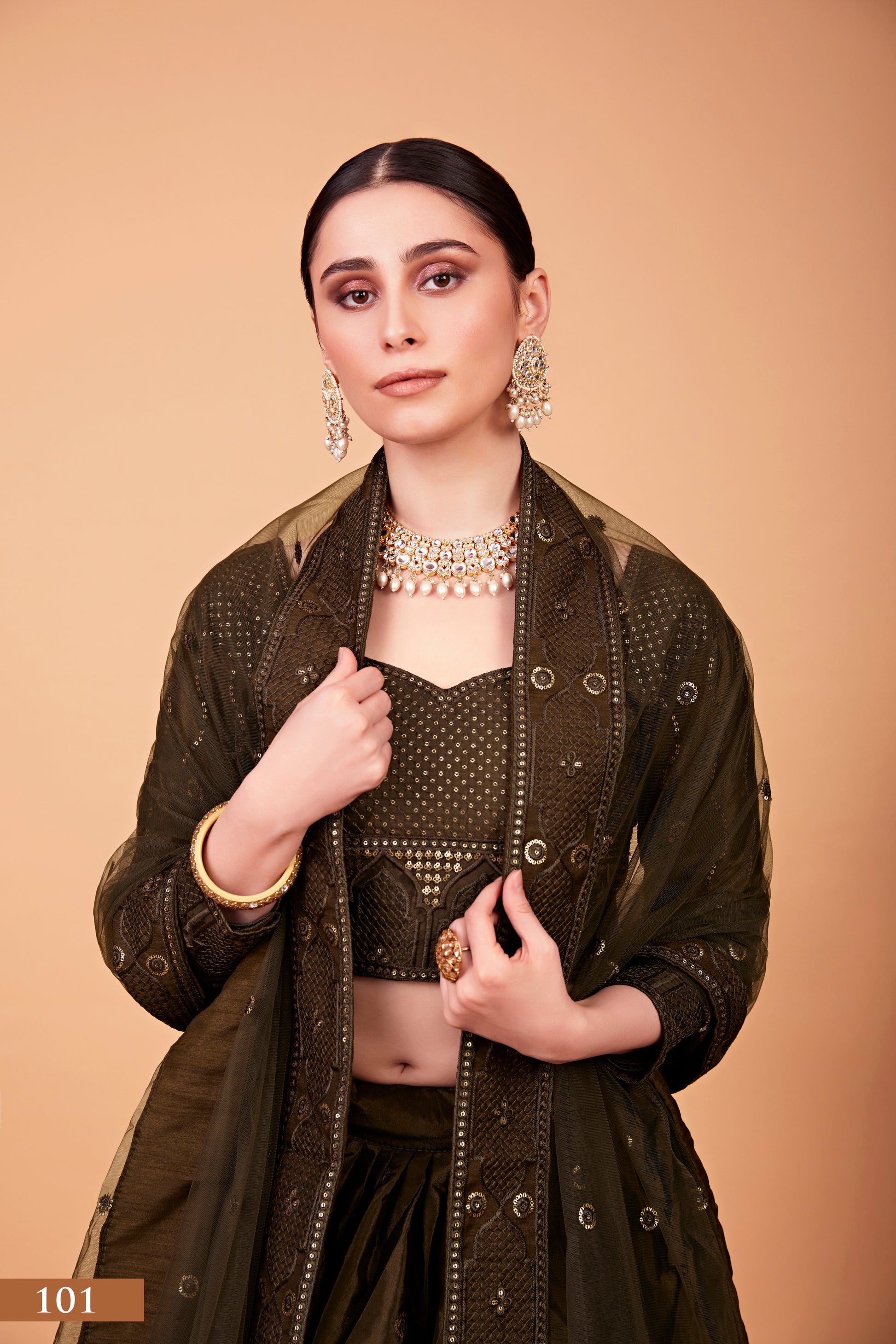 Sparkle & Stitch: Designer Mehndi Green Lehenga Choli Set with Thread and Sequin Embroidery